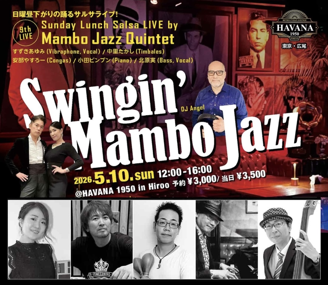 広尾HAVANA1950 東京都渋谷区広尾5-4-12 大成鋼機ビルB1F 広尾 日本=========================== 日曜昼下がりの 美味しいサルサライブイベント! Swingin’ Mambo Jazz - Sunday Lunch Salsa LIVE by ...続きを読む