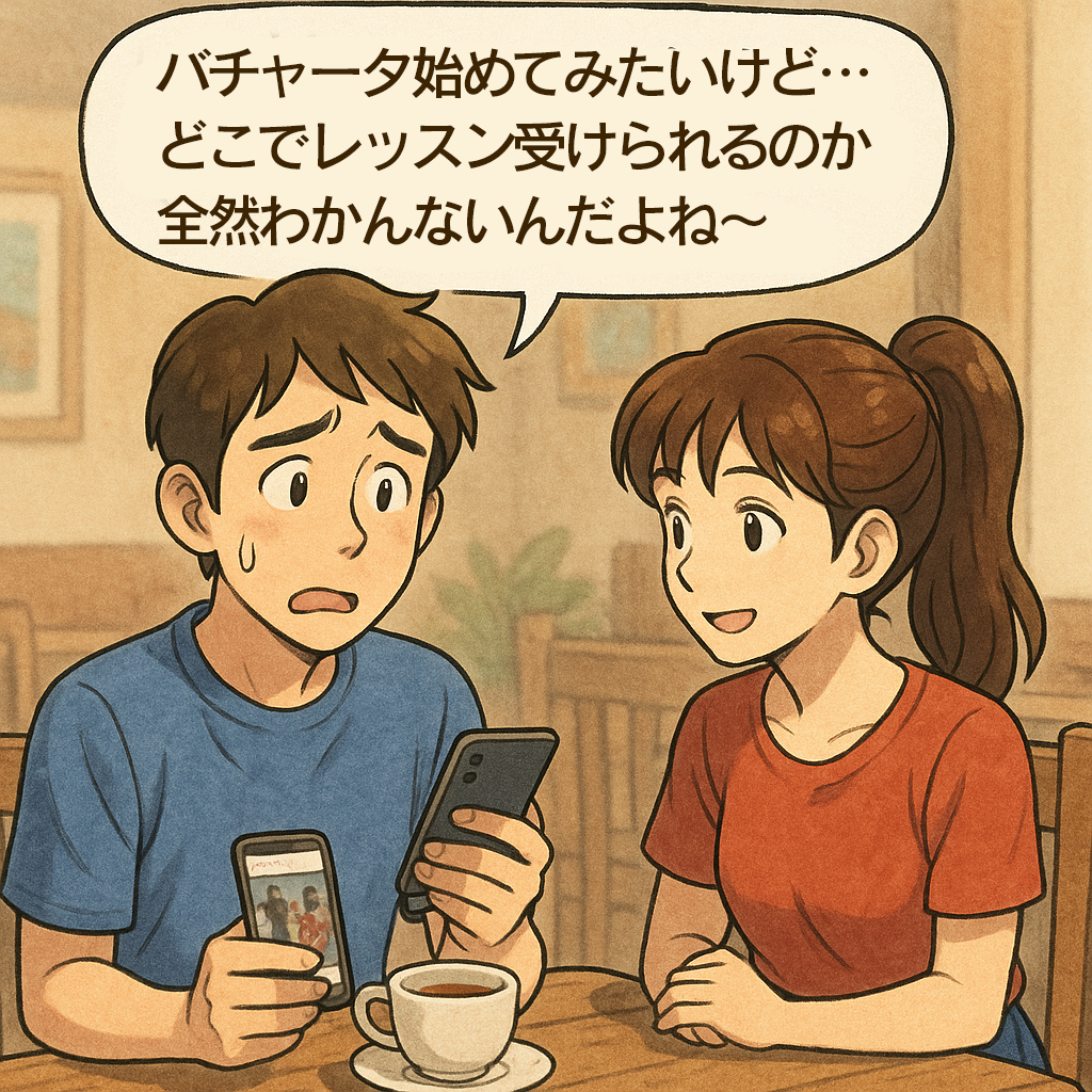 「バチャータ始めてみたいけど…どこでレッスン受けられるのか全然わかんないんだよね〜」
