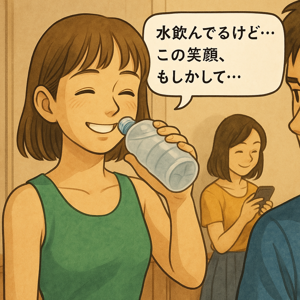 水飲んでいるけど、この笑顔もしかして