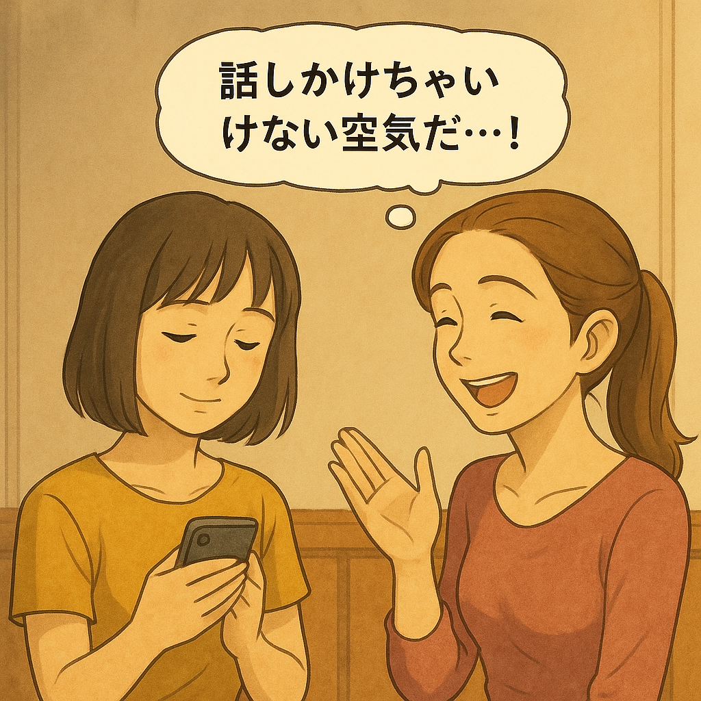 ・友達同士で会話している人 → 割り込んだら悪いかな…