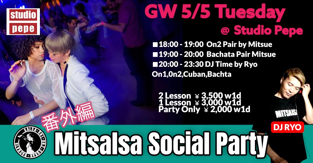 5月 16 Mitsalsa Social Party 18:30 - 20:30 六本木スタジオペペ 東京都港区六本木7丁目17−12 六本木ビジネスアパートメンツ, 六本木 イベント Details Get Directions