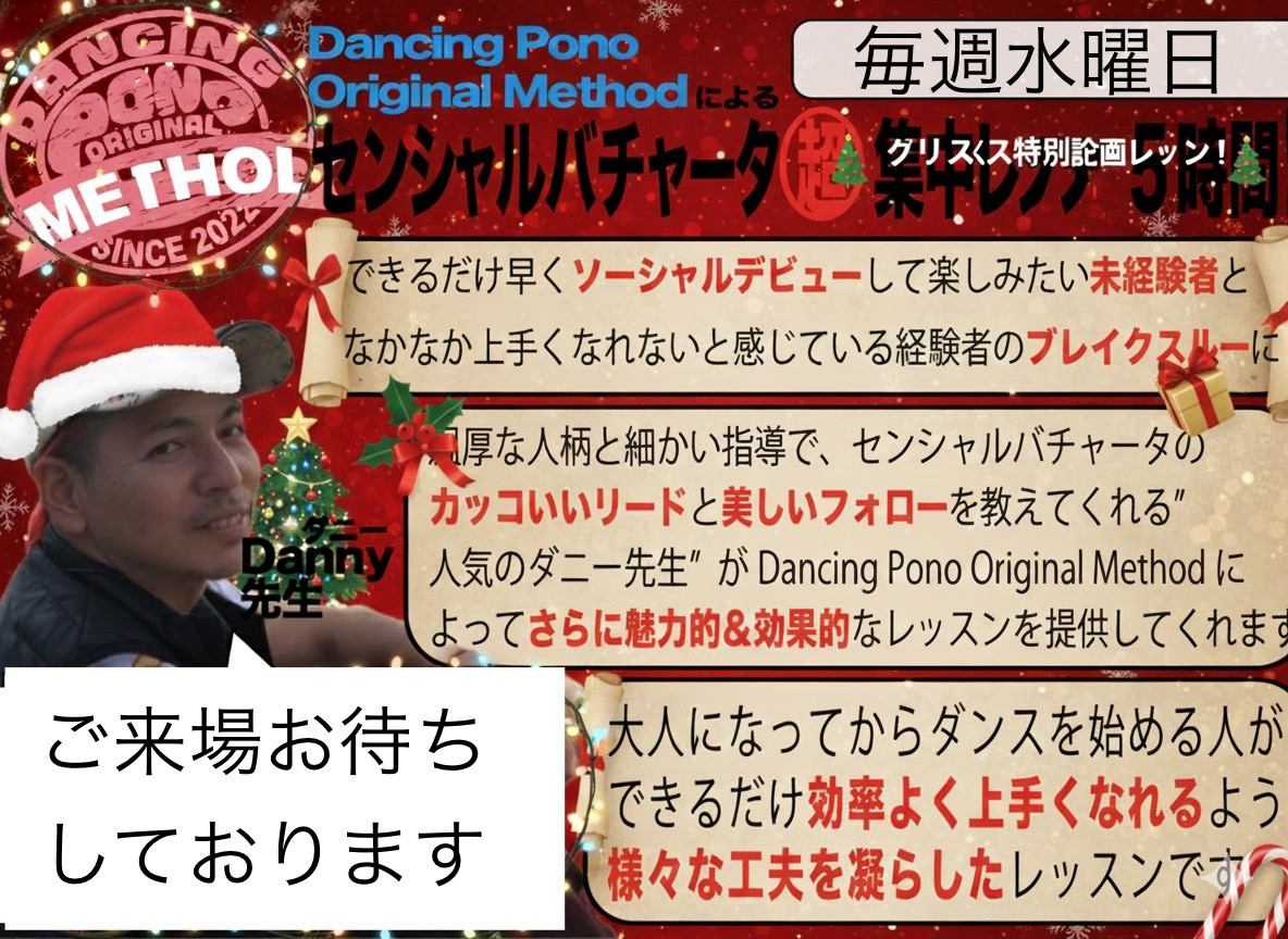 12月 24 18:30 - 23:30 センシャルバチャータ超集中レッスン5時間 両国スペースポノ(旧ハッピーターン) 墨田区両国4-18-4 グレイス両国203号, 両国 イベント Details Get Directions