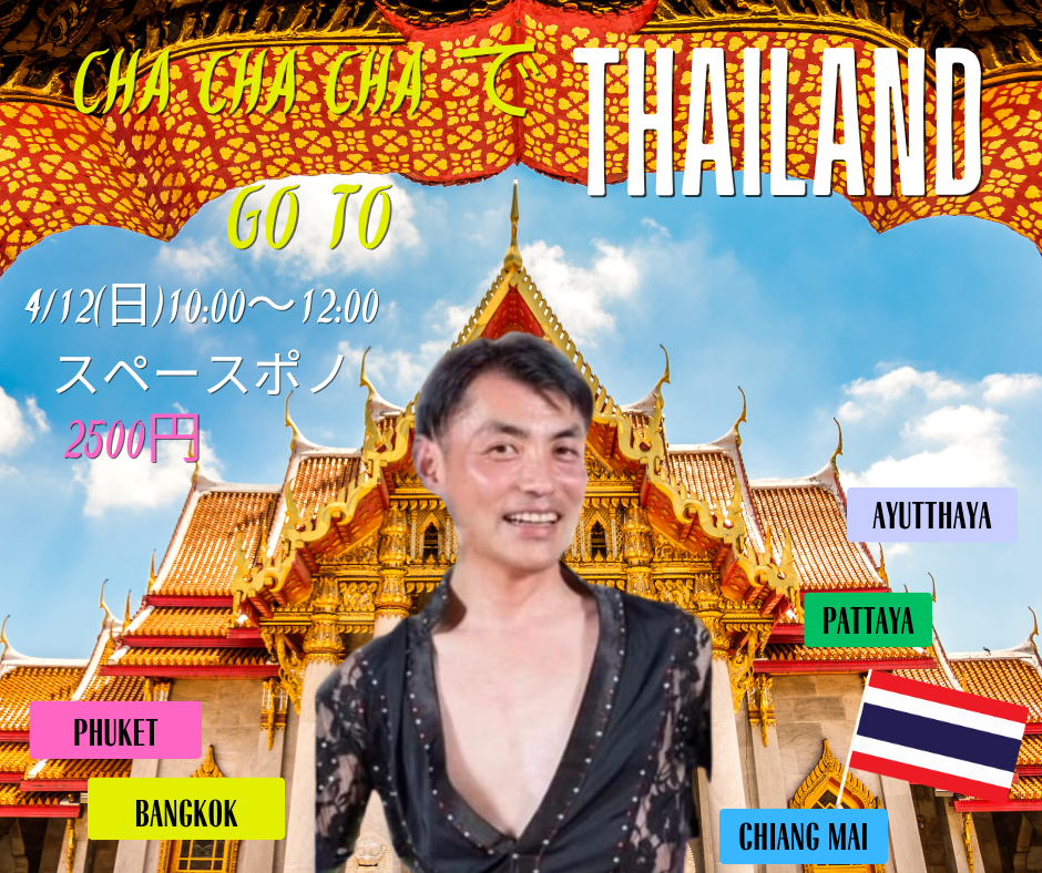 4月 12 Cha Cha Cha でGo to Thiland 10:00 - 12:00 両国スペースポノ(旧ハッピーターン) 墨田区両国4-18-4 グレイス両国203号, 両国 イベント Details Get Directions
